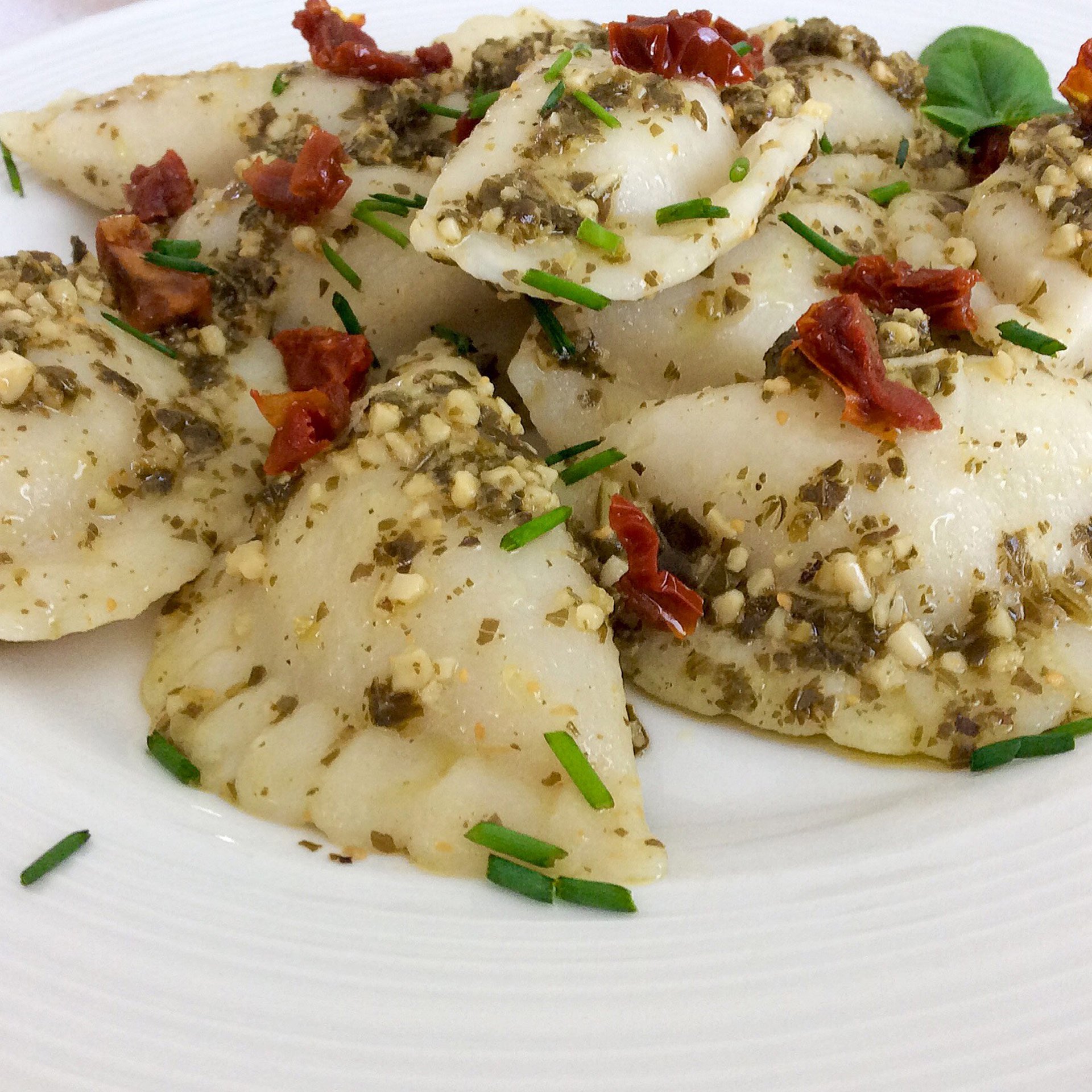 Mediterranean Magic: Basil Pesto & Sun-Dried Tomato Perogies